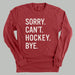 Sorry Can't Hockey Bye